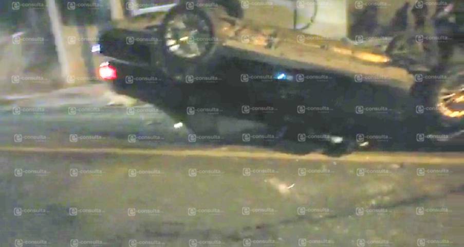 De acuerdo con los vecinos del lugar, el automóvil que quedó con las llantas hacía arriba era conducido por un sujeto que tras el siniestro, huyó con rumbo desconocido y dejó la unidad sobre la cinta asfáltica.