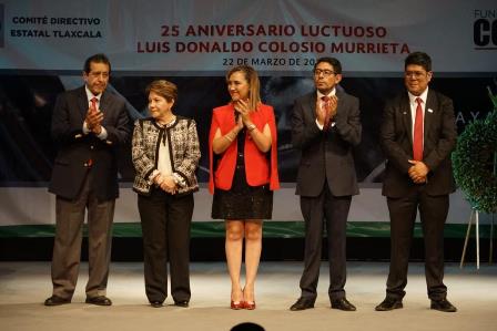 Ante un Teatro Xicohténcatl completamente abarrotado, el Comité Directivo Estatal del Partido Revolucionario Institucional (PRI), conmemoró el 25 aniversario luctuoso de Luis Donaldo Colosio Murrieta y entregó reconocimientos a la vida y obra de cuadros distinguidos del partido.