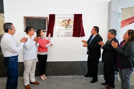Como parte de las actividades de la Conmemoración de los 500 años del Encuentro de Dos Culturas, la titular de la Comisión Organizadora, Anabel Alvarado Varela, develó una placa alusiva a este hecho histórico en Tzompantepec.