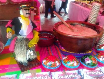 Zacatelco, tierra del adoratorio del zacate, hogar del ilustre revolucionario tlaxcalteca Domingo Arenas Pérez, presentó su exposición de la bebida prehispánica del cacao y que se obsequió a los presentes.