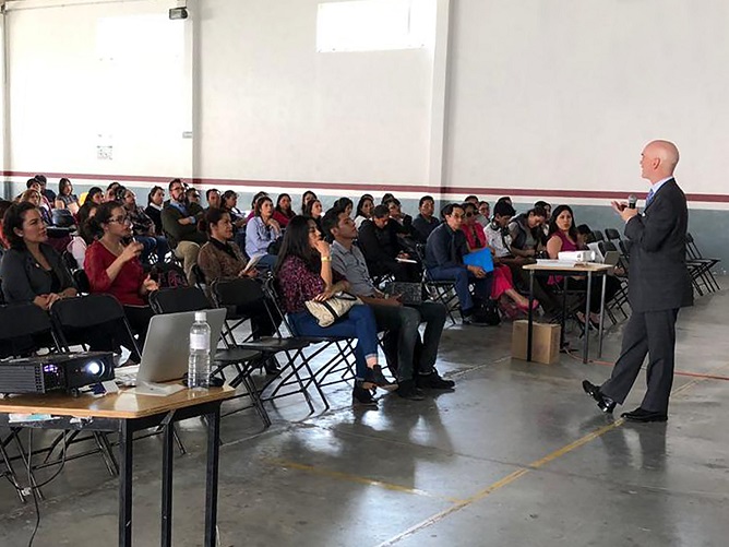 Con la finalidad de mejorar la formación integral de los estudiantes tlaxcaltecas, más de 100 docentes de inglés de nivel básico participaron en el curso “Idioms, Usage & Habit: Why learners need a learner's Dictionary”, impartido por el especialista Peter Sokolowski.