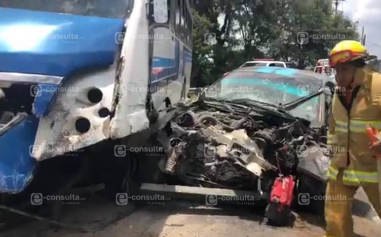 Fue una colectiva de la Flecha Azul la que colisionó con un automóvil particular cuando circulaban al parecer con exceso de velocidad casi en los límites con el estado de Puebla.