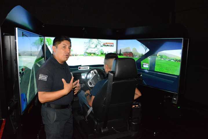 El simulador cuenta con tres pantallas, transmisión manual y automática, además, maneja distintos escenarios para el desarrollo de estrategias que mejoren la operatividad de los policías.