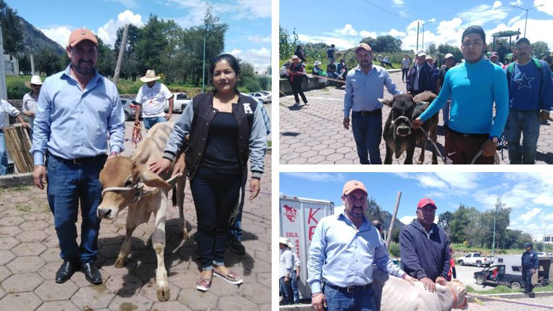 En una estrecha coordinación de esfuerzos entre el presidente municipal de San José Teacalco Venancio Pérez Manoatl y el diputado Víctor Castro López, se logró la entrega de 61 novillos de engorda apoyando a los campesinos de la región.