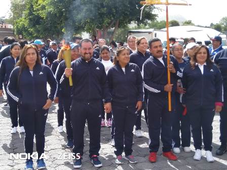 Tras recibir el fuego simbólico, se trasladó desde el centro expositor de la ciudad capital de Tlaxcala al municipio de Teacalco.
