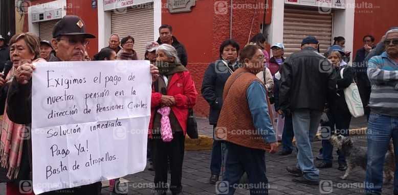 Jubilados y pensionados se manifestaron la mañana de este lunes en el centro de la capital tlaxcalteca para exigir al gobernador del estado, Marco Mena Rodríguez la destitución del director de Pensiones Civiles del Estado, Roberto Carlos Morán Pérez.