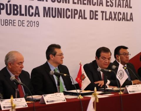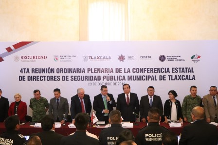 Huamantla, Tlaxcala.- El Presidente Municipal de Huamantla, Jorge Sánchez Jasso, en compañía del Gobernador del Estado, Marco Antonio Mena Rodríguez, y del Secretario Ejecutivo del Sistema Nacional de Seguridad Pública, Leonel Efraín Cota Montaño, encabezaron la Cuarta Reunión Ordinaria Plenaria de la Conferencia Estatal de Directores de Seguridad Pública Municipal de Tlaxcala, a la que se dieron cita presidentes y directores de Seguridad Pública Municipal en la entidad.