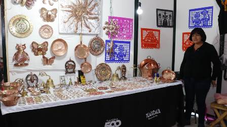 Este pabellón muestra piezas de alfarería, bisutería, cerámica, talabartería, tallado de madera, entre otros productos elaborados por los artesanos de distintos municipios como Tlaxcala, Apizaco, Chiautempan y San Pablo del monte, ´por mencionar algunos.