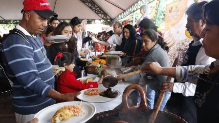 La Muestra Gastronómica que fue amenizada por los grupos musicales “Da Rock Band” y “De Leos”, reunió a cientos de familias tlaxcaltecas y visitantes, que degustaron del mole acompañado por arroz, tortillas y tamales, sin faltar las bebidas tradiciones como el pulque y el agua de cacao.