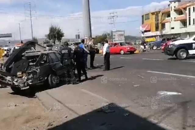 Fue a la altura del municipio de Chiautempan donde se produjo este accidente en el que se vio involucrada una unidad de Flecha Azul y un vehículo particular.