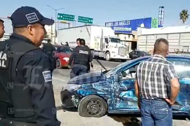 Un par de presuntos delincuentes terminaron estampando su unidad contra una colectiva, al no respetar un semáforo en su huida sobre la carretera Chiautempan-Puebla a la altura de Macdonalds.