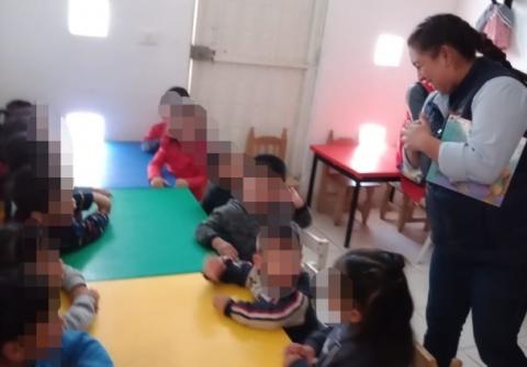 La actividad fue realizada en la estancia infantil “Aventuras en pañales” de la comunidad de Actipac, donde alrededor de 18 niños disfrutaron del cuento titulado “Los amigos del Grillo” del programa “Familia y Buen Trato”.