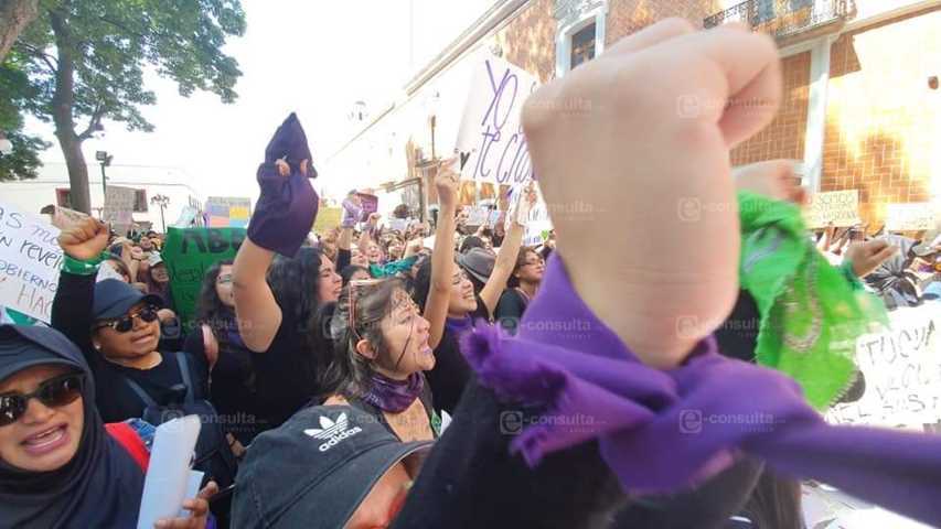 En el marco del Día Internacional de la Mujer, docenas de féminas tlaxcaltecas se manifestaron en el centro de la capital del estado para exigir que se frene la violencia de género y los feminicidios en la entidad.