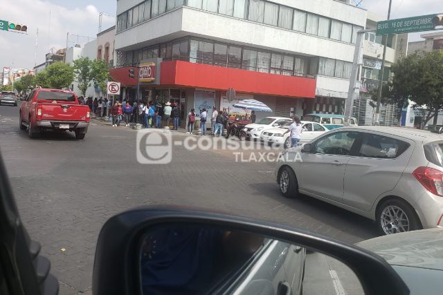 Ciudadanos del municipio de Apizaco, pidieron a las autoridades su intervención para evitar la propagación del Covid-19, luego de que la mañana de este jueves se observara una importante cantidad de gente haciendo fila para entrar a una institución bancaria.