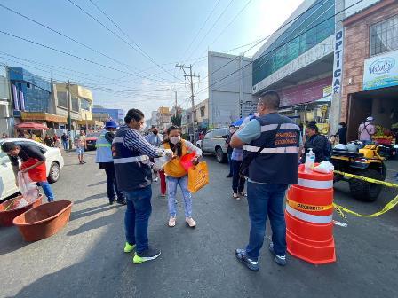 Con el objetivo de coadyuvar a frenar la curva de contagios por Covid-19, y por recomendación del gobierno federal y estatal, el Ayuntamiento de Apizaco colocó 6 cercos sanitarios para ingresar al tianguis.