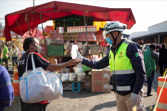 El Coordinador Estatal de Protección Civil, José Antonio Ramírez Hernández, indicó que se distribuyeron un total de 45 litros de gel antibacterial y 7 mil cobrebocas en los centros de abasto.