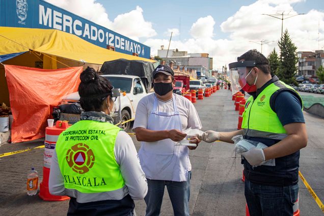 José Antonio Ramírez Hernández, titular de la CEPC, reconoció el trabajo coordinado con autoridades locales, quienes se suman a los filtros con personal de los ayuntamientos, seguridad pública y vialidad para repartir los insumos en los accesos de los tianguis.