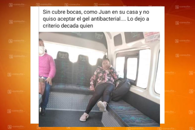 “La señorita todavía nos ofendió y prácticamente se acostó en los asientos de la combi, a pesar de que se le pidió que se pusiera gel y cubrebocas o se bajara”, denunciaron.