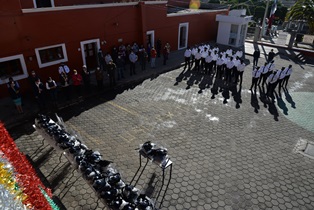 En este sentido, en la explanada de la Presidencia Municipal, el edil exhortó a los uniformados a redoblar esfuerzos, cumplir con su responsabilidad en beneficio de los pobladores y visitantes para seguir manteniendo un municipio seguro.