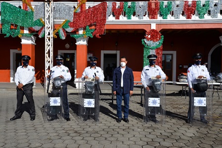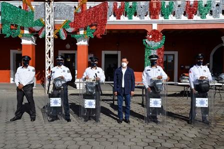 Durante la entrega de uniformes y equipo táctico a elementos de la Dirección de Seguridad Pública, el alcalde de Nanacamilpa, Víctor Hugo Sánchez Flores, pidió a los efectivos respetar a la ciudadanía y a turistas que visitan esta demarcación.