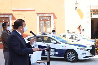 En el acto, el alcalde, quien se hizo acompañar de su esposa y Presidenta del Sistema DIF Municipal Gabriela Escamilla Pérez, aseveró que el recurso corresponde al programa FORTASEG 2020 cuyo monto es por 6 MDP, y que se ejercen en cursos de capacitación para el personal, pago de exámenes de control y confianza, adquisición de dos unidades más, en próximas fechas, y uniformes, entre otras acciones.