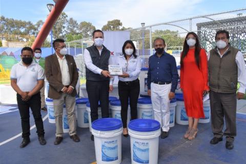 Con el objetivo de contribuir al mejoramiento y preservación de las condiciones sanitarias de las fuentes y abastecimientos de agua para uso y consumo humano, la tarde de este martes se hizo entrega de insumos para la desinfección de agua en las instalaciones del polideportivo de Zacatelco a representantes de 16 municipios del estado de la gerencia regional de Tlaxcala.