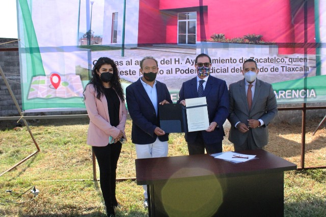 El presidente municipal de Zacatelco, Tomás Orea Albarrán y el magistrado presidente del Tribunal Superior de Justicia (TSJE) y del Consejo de la Judicatura del Estado (CJE), Fernando Bernal Salazar, encabezaron el evento en el que se hizo entrega al Poder Judicial de la escritura del predio denominado Capula que fue donado por el ayuntamiento y en el que se edificará la Casa de Justicia de Zaragoza, que beneficiará a miles de justiciables de este lugar y municipios circunvecinos.