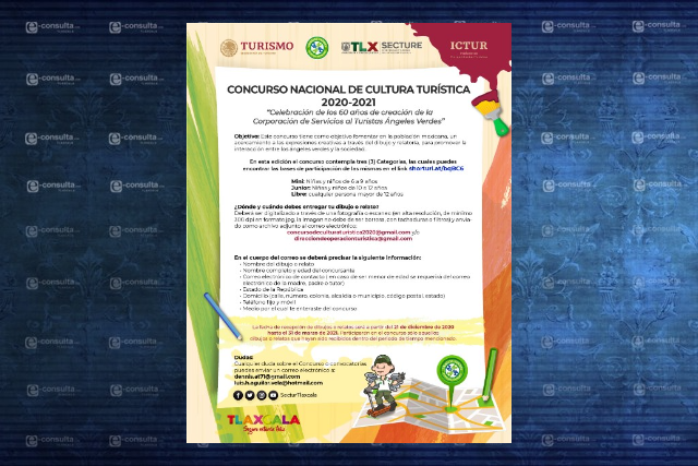La Secretaría de Turismo del Estado (Secture) invita a participar en el Concurso Nacional de Cultura Turística 2020, que realiza la Secretaría de Turismo Federal con motivo de la “Celebración de los 60 años de la creación de la Corporación de Servicios a Turistas Ángeles Verdes”.