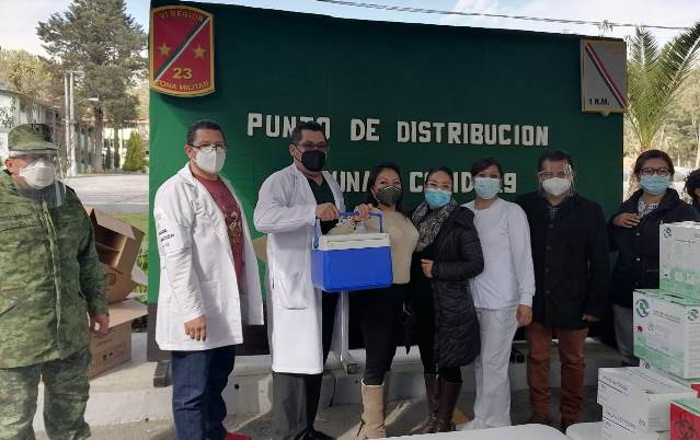 Hospital del ISSSTE Tlaxcala recibió 745 dosis de vacuna Covid. Personal de esa institución acudió al punto de distribución que se ubicó en la 23/a Zona Militar.