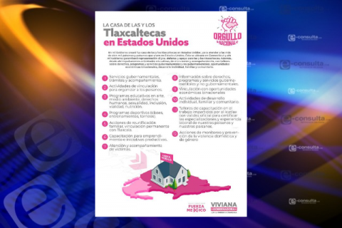 Barbosa Bonola expresó que esta es su preocupación, y por ello sabedora de que en la zona tri-estatal de Nueva York, New Jersey y Connecticut, es donde hay mayor número de tlaxcaltecas, tiene proyectado instalar la “Casa de las y los tlaxcaltecas en Estados Unidos” para todas las y los migrantes. “Ahí la comunidad tlaxcalteca podrá encontrar esa mano, esa ayuda en todos los sentidos”. Esta casa estará ubicada en Connecticut con el propósito de atender a las más de cien mil paisanas y paisanos. “Ahí mi gobierno garantizará una representación digna, la defensa y el apoyo de las y los tlaxcaltecas. Además, impulsaremos actividades educativas, de vinculación, de apoyo y de acompañamiento con talleres sobre derechos, programas y servicios gubernamentales y no gubernamentales y habrá oportunidades económicas binacionales y desarrollo individual, familiar y comunitario”.