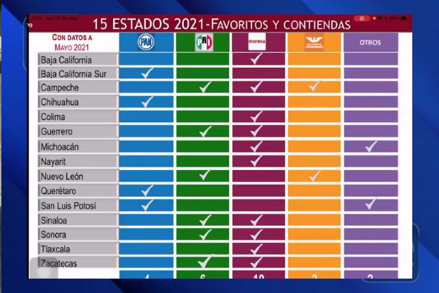 A poco más de dos semanas para los comicios electorales en los que se renovarán 15 gobiernos estatales, el director de Consulta Mitofsky, Marcelo Ortega aseguró que el Movimiento de Regeneración Nacional (MORENA), podría llevarse entre 7 y 9 gubernaturas de las 15 que se encuentran en disputa en el país, entre ellas Tlaxcala, donde ve una clara ventaja en favor de la candidata, Lorena Cuéllar Cisneros.