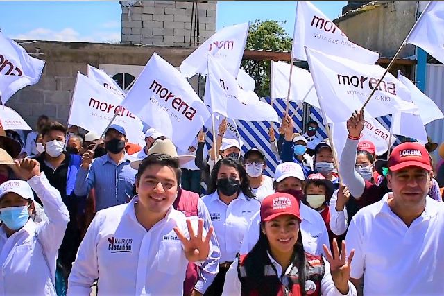 Ante la confusión que han generado candidatos de otros partidos que conforman la coalición “Juntos Haremos Historia en Tlaxcala”, el diputado local del Movimiento de Regeneración Nacional (MORENA), Ramiro Vivanco Chedraui y uno de los fundadores de este partido, Mauricio Pozos Castañón acompañaron a la candidata de este instituto político a la presidencia municipal de Tlaltelulco, Yazmin del Razo Pérez a caminar por su municipio este domingo y pedir el voto en línea por MORENA.