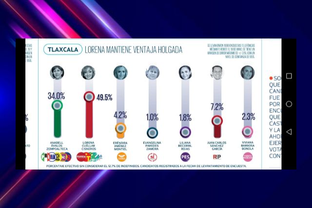 A casi una semana de la elección, la encuesta realizada por “El Heraldo” en las entidades federativas que tendrán comicios electorales, coloca a la candidata de la coalición “Juntos Haremos Historia en Tlaxcala”, Lorena Cuéllar Cisneros con una clara ventaja sobre la abanderada del Partido Revolucionario Institucional (PRI), Anabell Ávalos Zempoalteca, quien queda muy rezagada en la intención de voto frente a la morenista.