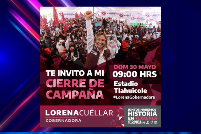 Lorena Cuéllar, candidata de la coalición "Juntos Haremos Historia en Tlaxcala" a través de distintos medios y redes sociales, ha hecho la invitación para acudir al cierre de campaña el próximo domingo.