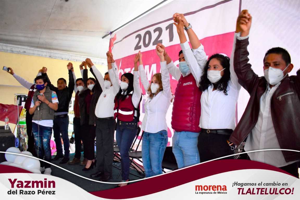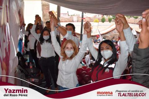 “No mentir, no robar y no traicionar al pueblo…con el pueblo todo, sin el pueblo nada”, fueron las palabras que marcaron el discurso con el que cerró exitosamente su campaña, la candidata del Movimiento de Regeneración Nacional (MORENA) a la presidencia municipal de Tlaltelulco, Yazmin del Razo Pérez enfrente de mil personas que la acompañaron para proclamar la llegada de la 4T a este municipio.