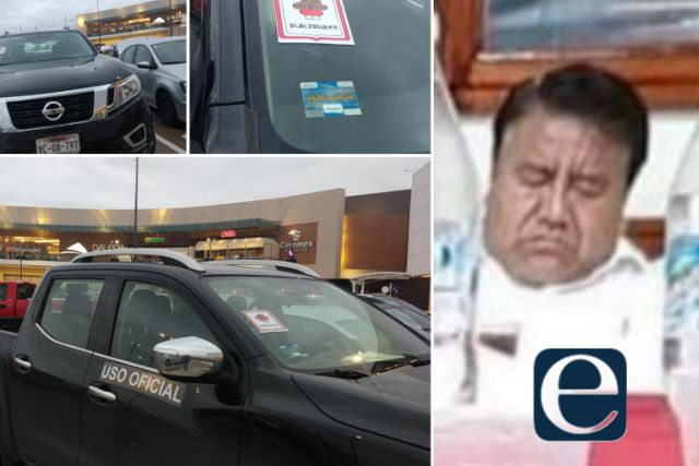 Se trata de la camioneta Nissan NP300 Frontier color negro modelo 2019 con placas de circulación XC-08-797 del Estado de Tlaxcala, la cual está a cargo del gobierno municipal y debería solo circular en días y horarios laborales, situación que no ocurrió al ser observada este domingo por la tarde en el centro comercial en donde no precisamente se adquieren productos de la canasta básica.