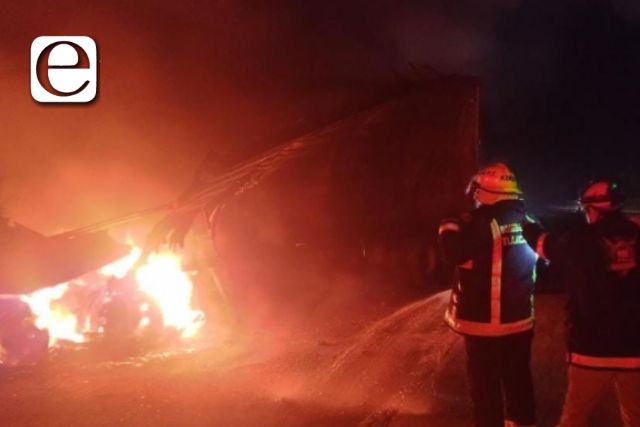 Un choque entre dos unidades pesadas, provocó que una de éstas fuera consumida por las llamas, por lo que elementos del cuerpo de bomberos de la Secretaría de Seguridad Ciudadana (SSC), tuvo que intervenir para apagar el fuego.