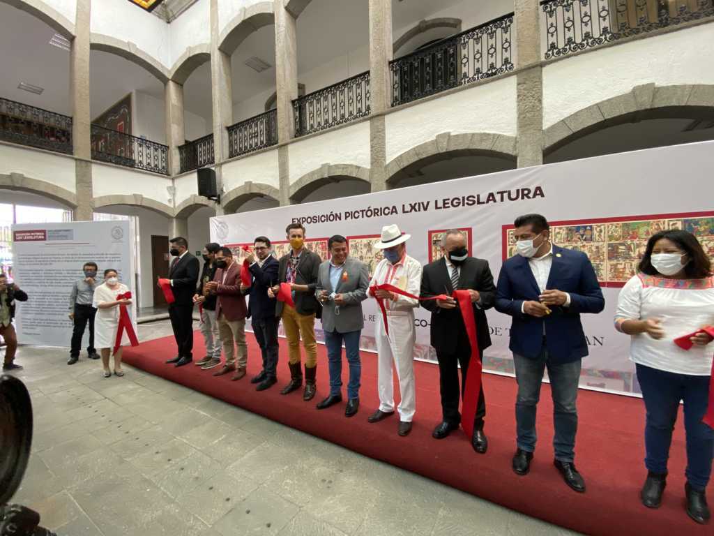 En esta ocasión, en el patio del Palacio Legislativo se llevó a cabo el montaje de la exposición pictórica de David Gremard "Relato mítico-estético de Tlaxcallan".