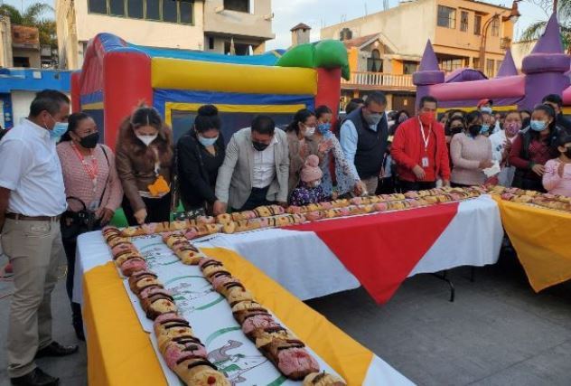 Con apego a protocolos sanitarios y la participación de personal de Protección Civil y Seguridad Pública, este miércoles 5 de enero se partió la Gran Rosca de Reyes, frente a la presidencia municipal de Papalotla.