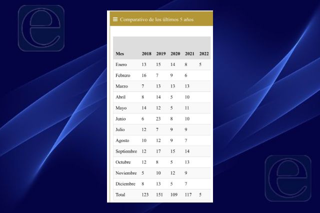 Fueron cinco los homicidios dolosos que se tuvieron en enero, un 38 por ciento menos que en el mismo mes de 2021 y un 28 por ciento menos con respecto a diciembre pasado, números muestran claramente una contracción iniciando el 2022.