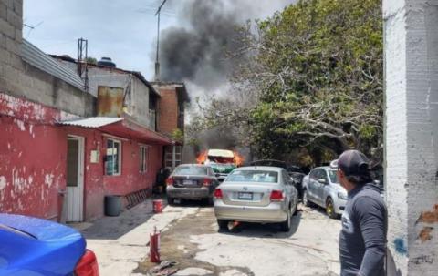 Tres personas lesionadas es el saldo de un incendio de una unidad del transporte público de la empresa USU, el cual se registró en en El Sabinal, municipio de Tlaxcala.