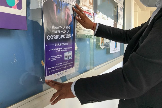 La Fiscalía Especializada en Combate a la Corrupción (FECC) adscrita a la Procuraduría General de Justicia del Estado (PGJE) colocó carteles informativos en diversas instituciones gubernamentales y de esta manera, fomentar la cultura de la prevención y promover la denuncia.