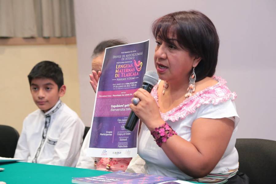 Tlaxcala/17/ Junio/2022.Esta mañana el grupo de lenguas de Tlaxcala náhuatl y otomí, invitó al desfile de mayordomías de Ixtenco, el próximo 19 de junio a las 09:00horas, esto como parte de la feria de Ixtenco .