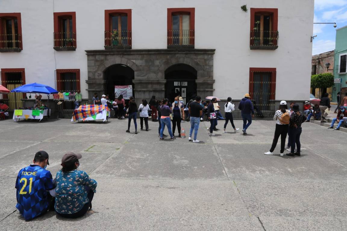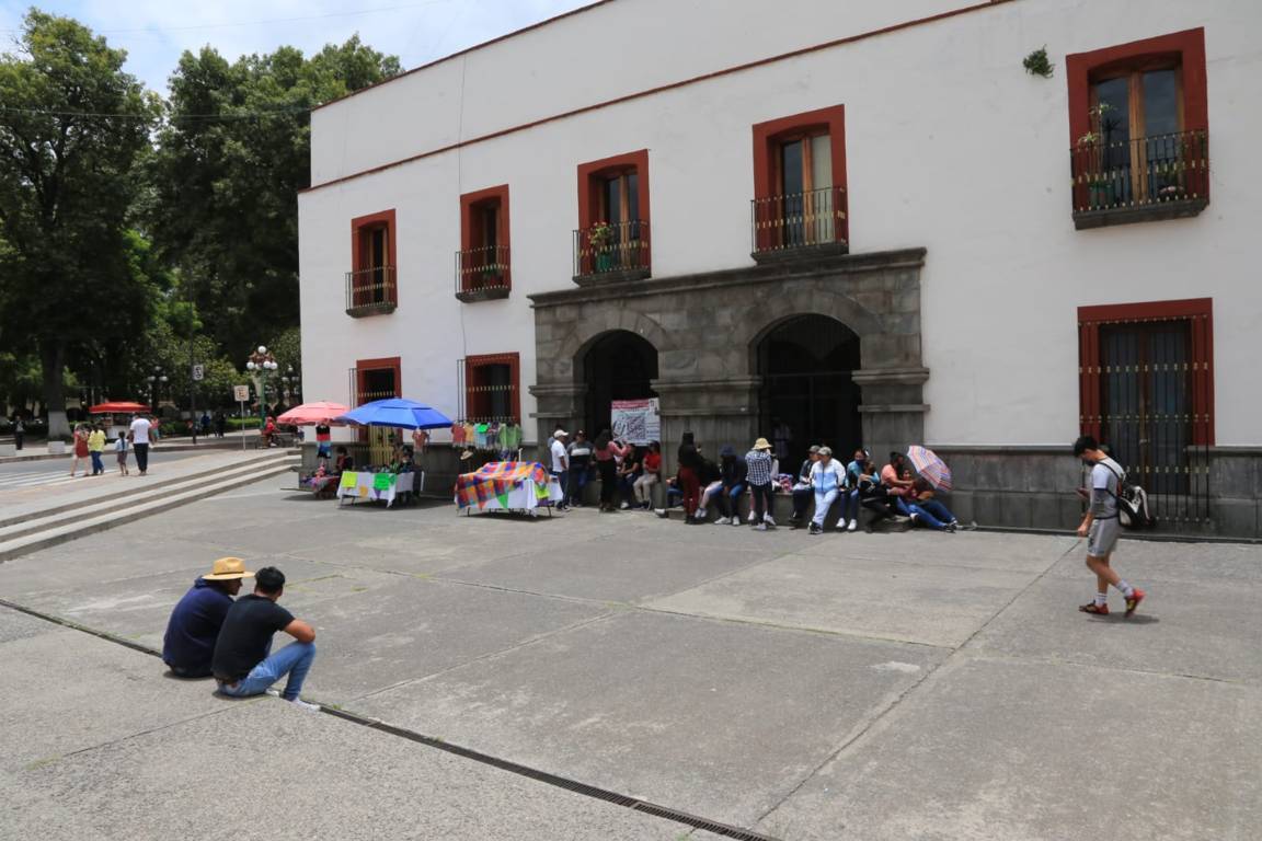 Tlaxcala, Tlax,10/08/22. Esta tarde habitantes de Santa Apolonia Teacalco, así como estudiantes que no fueron aceptados en la Normal Leonarda Gómez Blanco, mantienen una reunión con autoridades locales en la subsecretaría de Gobierno, para intentar llegar a una solución tras el conflicto que desató la no admisión de jóvenes originarios de este municipio.