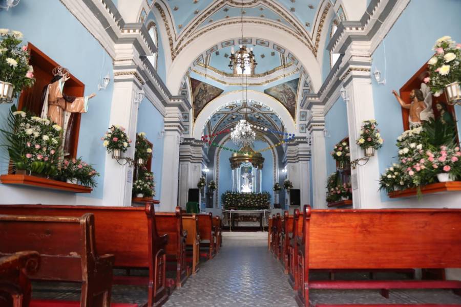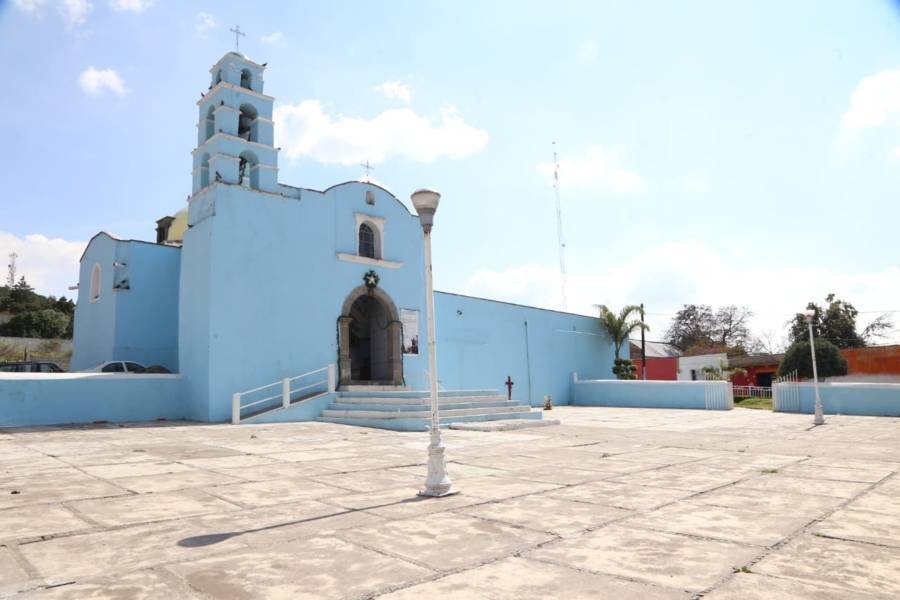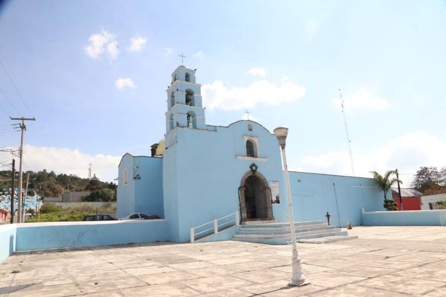Tocatlán.24-Octubre-2022.La construcción data del siglo XVIII. Su planta arquitectónica tiene la forma de cruz latina. La fachada principal es de aplanado, la puerta de acceso es de madera y forma un arco de medio punto, arriba de ésta, hay una ventana de igual forma que ilumina el coro, y en la parte superior un pequeño nicho.