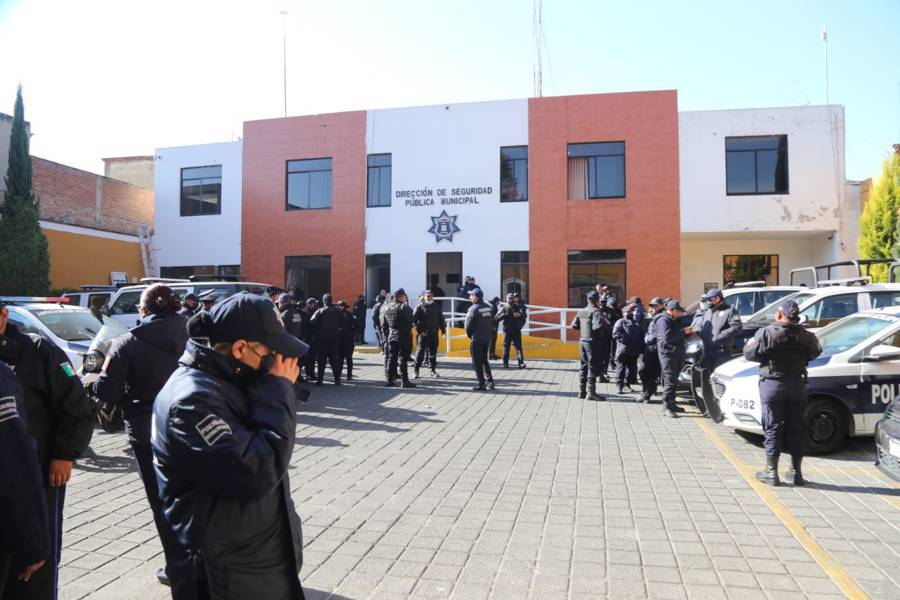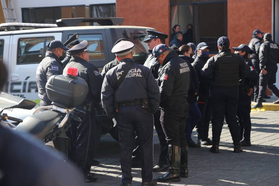Tlaxcala. Tlax.16-enero-2023-Esta mañana policías municipales de Tlaxcala, pararon labores por la falta de pago de un bono de fin de año.