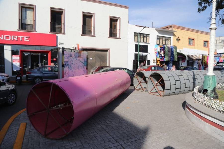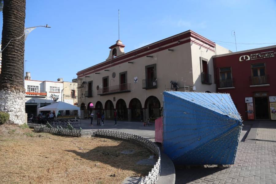 Chiautempan. Tlax.19-enero-2023- A unos pocos días de que termine enero, las estructuras del árbol y castillo navideño han sido desmontadas frente al edificio del Ayuntamiento de Chiautempam.