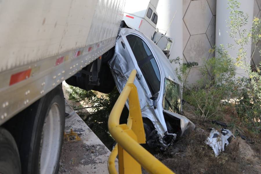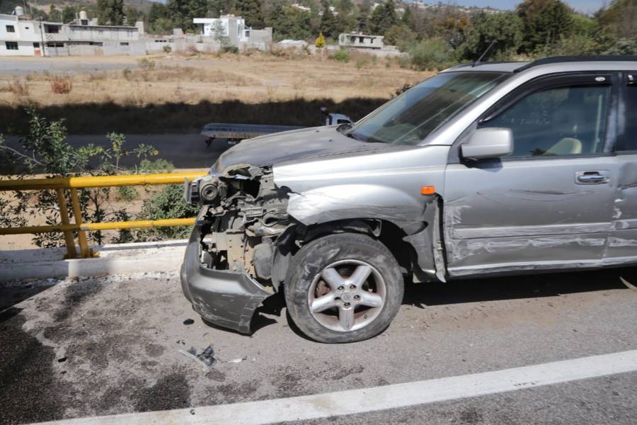 Apetatitlán. Tlax.20-enero-2023-Cerca del mediodía de este viernes un tráiler, que presuntamente era conducido exceso de velocidad, colisionó contra un automóvil compacto, así como una camioneta, sobre la carretera Apizaco-Tlaxcala a la altura del "molinito". Por fortuna no se reportan personas lesionadas a pesar de lo aparatoso del percance.