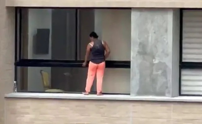 Santa María de Los Ángeles, Colombia: Una mujer que se desempeña como empleada doméstica se viralizó tras ser evidenciada por limpiar ventanas desde un doceavo piso.