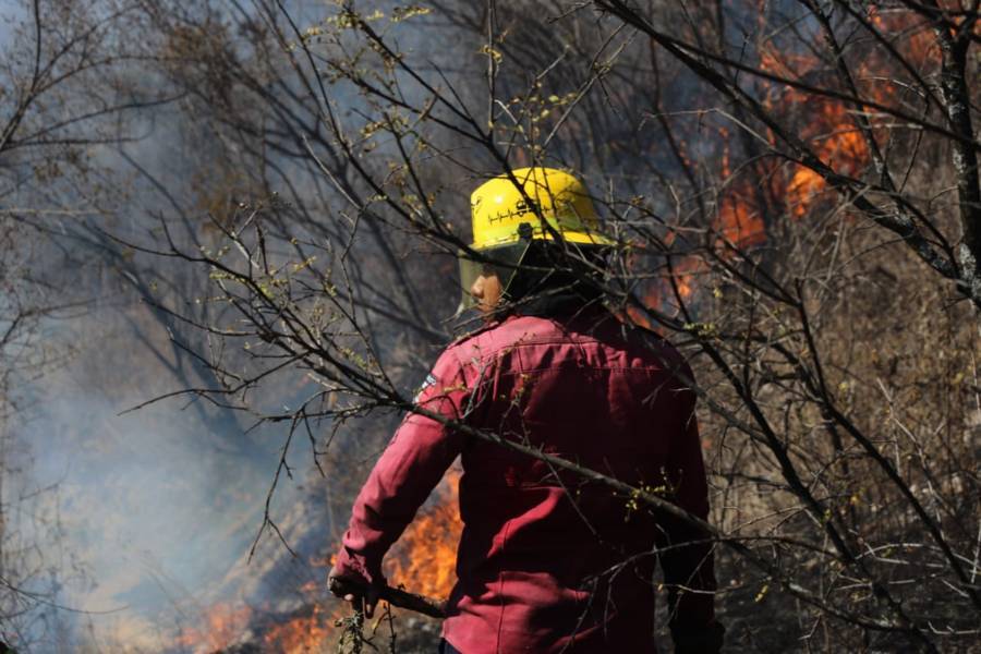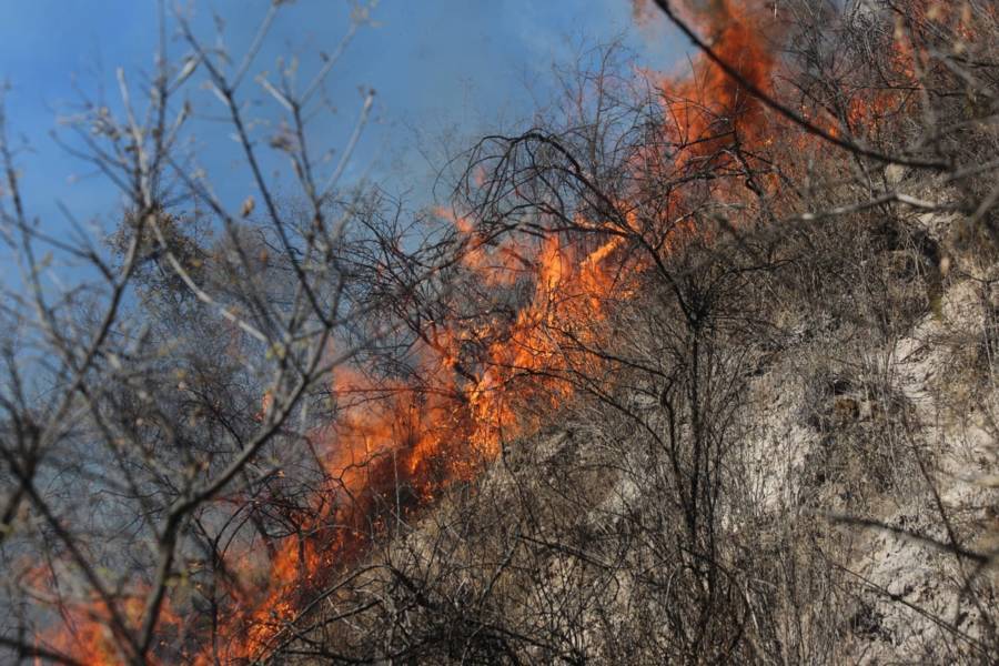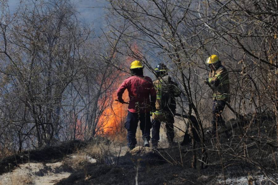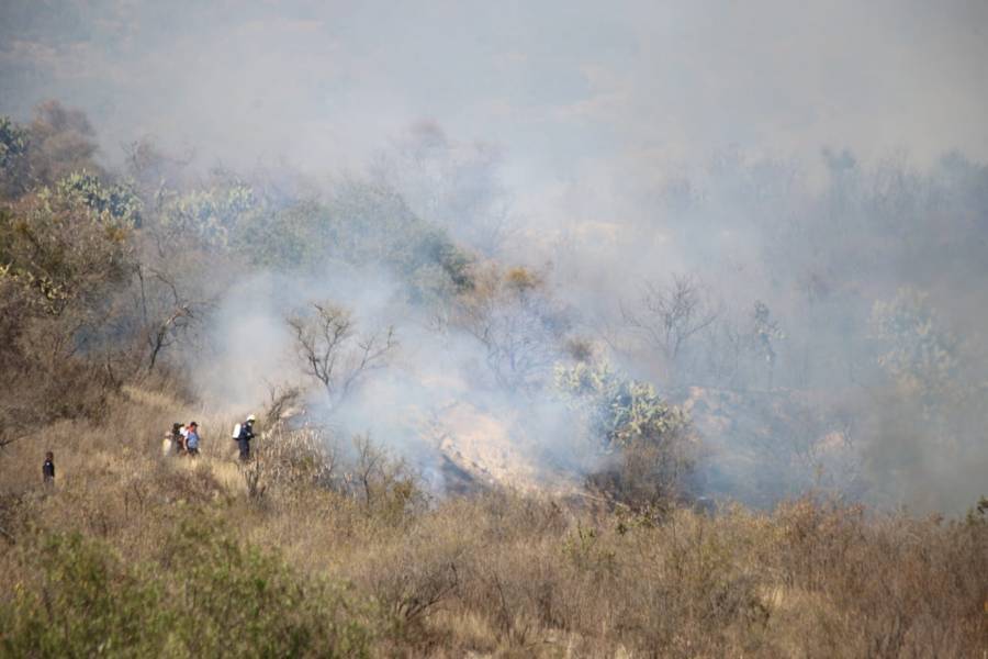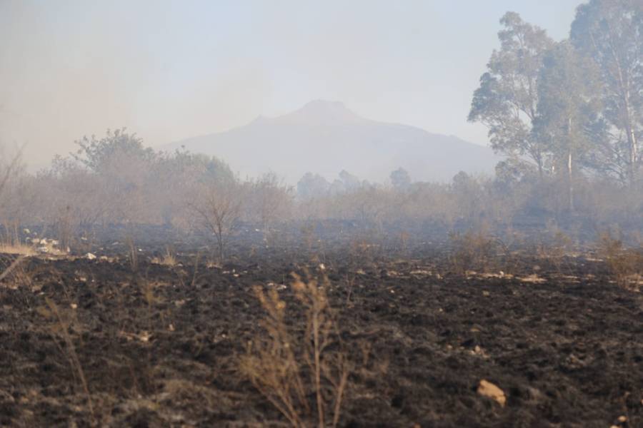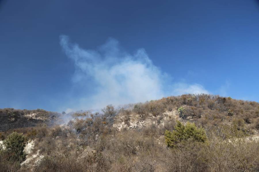 Panotla. Tlax.31-enero-2023-Esta tarde se registra un incendio de pastizales en la zona de los cerros de Techachalco, perteneciente al municipio de Panotla, por lo anterior Bomberos del Estado, policías municipales e integrantes de Protección Civil de Panotla, acuden al sitio para intentar sofocar las llamas que ya han arrasado con varias hectáreas.